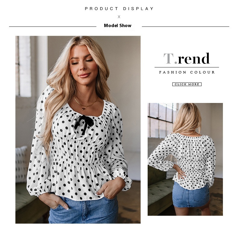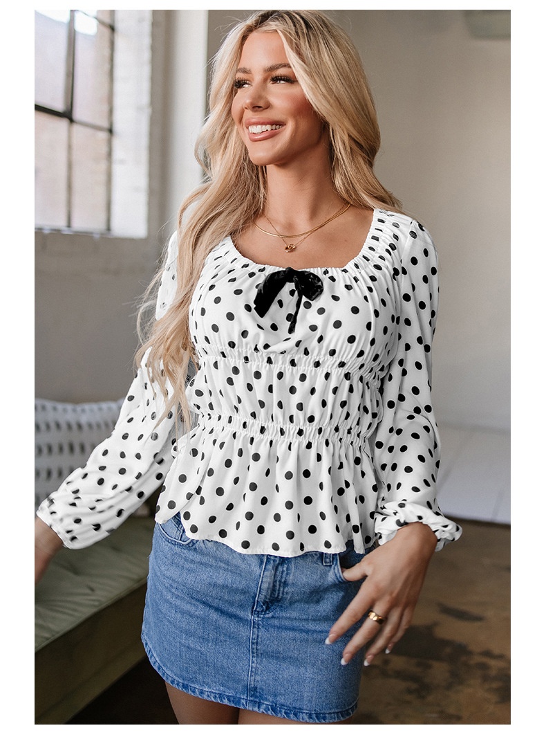 Women's Loose Bundle Casual Square Collar Polka Dot Long Sleeve Shirt