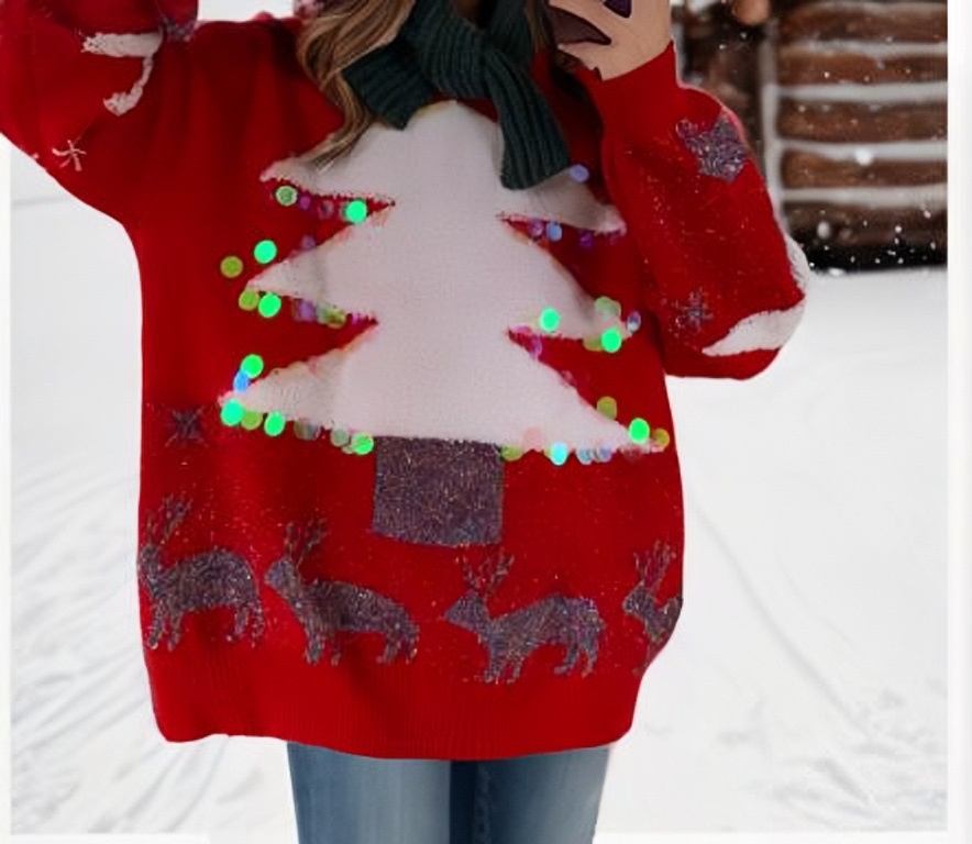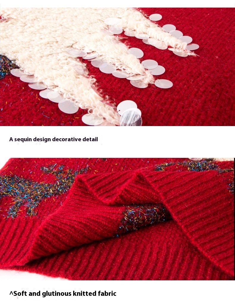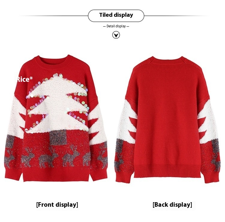 Women's Loose Christmas Tree Three-dimensional Sequins Pullover Crew Neck Sweater