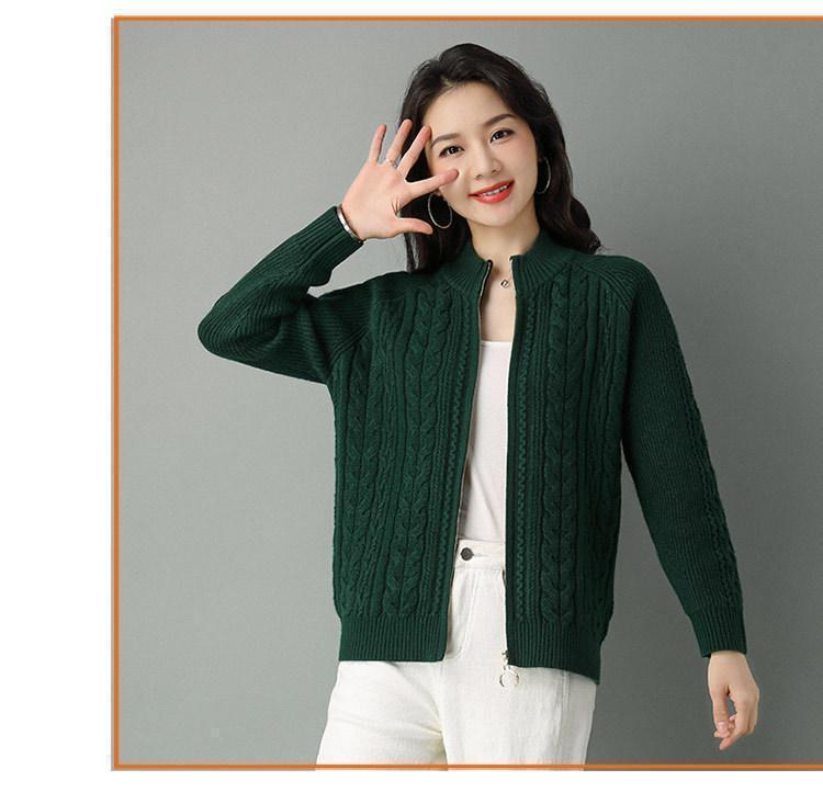 Women's Solid Color Zipper Sweater Loose Long Sleeve Jacket