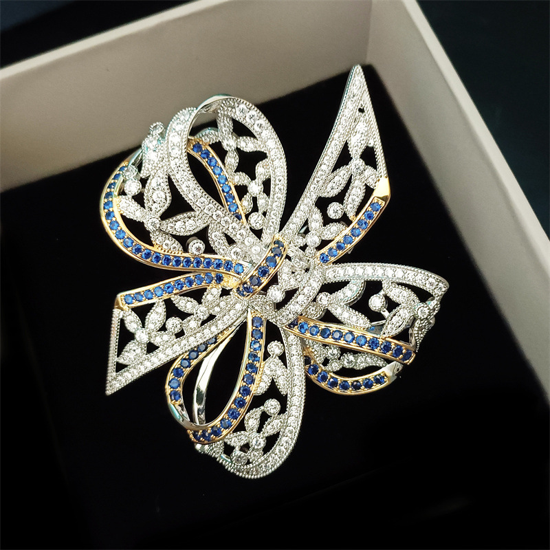 Zircon Classic Bow Brooch Women's All-match Suit Accessories Coat Pin